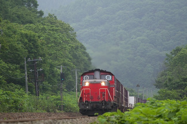 6時台の室蘭本線。寝台特急、貨物列車など10分間隔で列車が通過。町撮りのインタバル