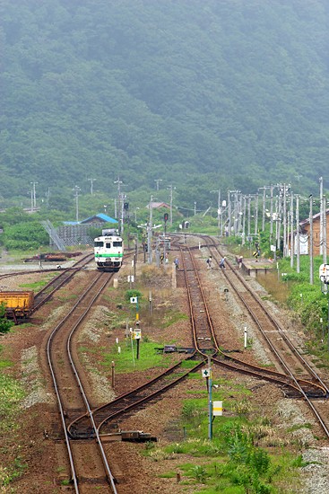 静狩は金山で栄えた町。山間の駅のように見えますが、向って右側は噴火湾の砂浜。栄華の時代を偲ばせる大きな駅でした。