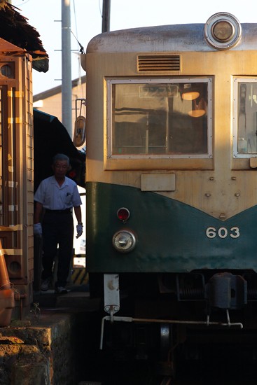 夕暮れの終点駅にて、発車を待つ。(市役所前−西御坊)