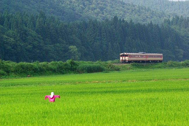 1925D 末広 2006.8.6 真冬には まっすぐに延びた白い線路を 道路の上から撮った場所も 目が覚めるような青々とした世界に。 EOS Kiss Digital Canon EF70-200mm F4L USM (F7.1 1/400sec. ISO200 f122mm)