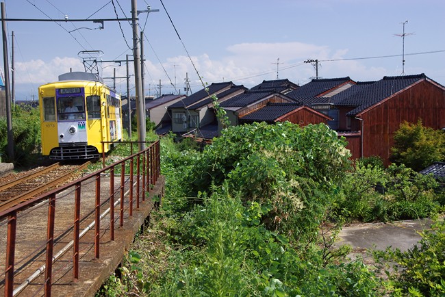 万葉線バラエティ 「加越能鉄道越ノ潟線」あらため「万葉線」 終点越ノ潟線までの30分 北陸らしい沿線風景の中を 路面あり専用軌道あり 市街地あり下町あり 最新車輌ありレトロな車輌あり こんな愉しい鉄路は中々ありません 一往復だけだったのが ちょっと残念