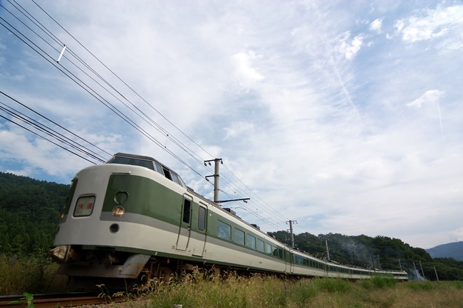 新宿発のホリデー快速 189系6両編成 今日は珍しいあさま色。広角でスッポリ (寿・三つ峠間)