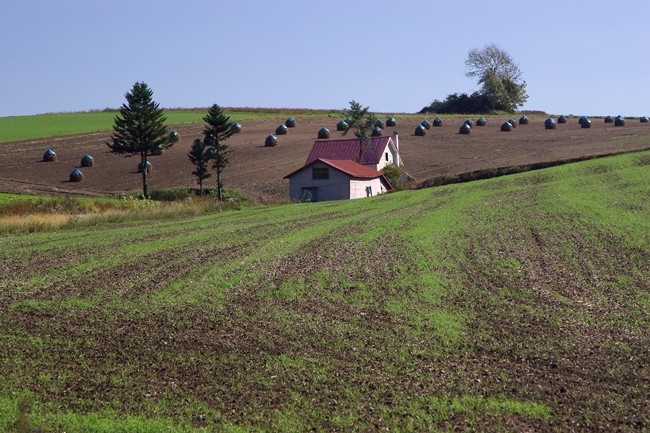 いつもの場所にて。ニオ(刈り取った豆を積んで干す)があるのが秋らしい