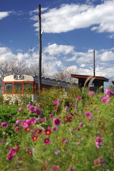 花の駅 浜のコスモス(ちょっと盛り過ぎだったので 列車ピン)。