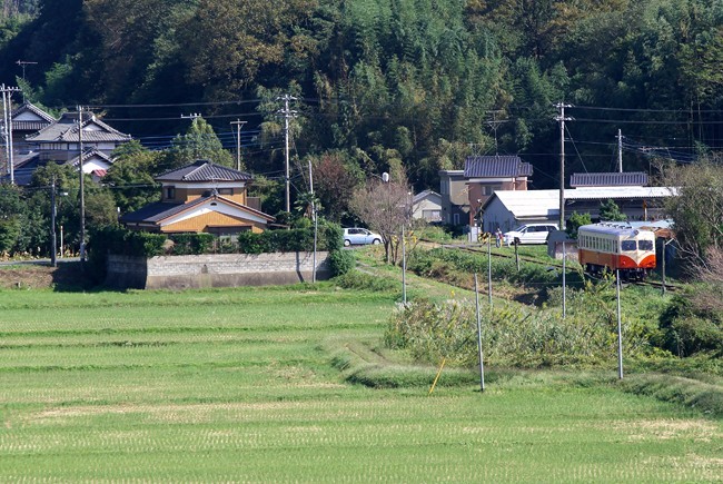 主役の秋(玉造町 10.9) 玉造町駅を発車し ゆっくりと鉾田へ向う432 プチ俯瞰場所から trawayさんと2人 のんびり撮りました EOS 20D Canon EF70-200mm F4L USM