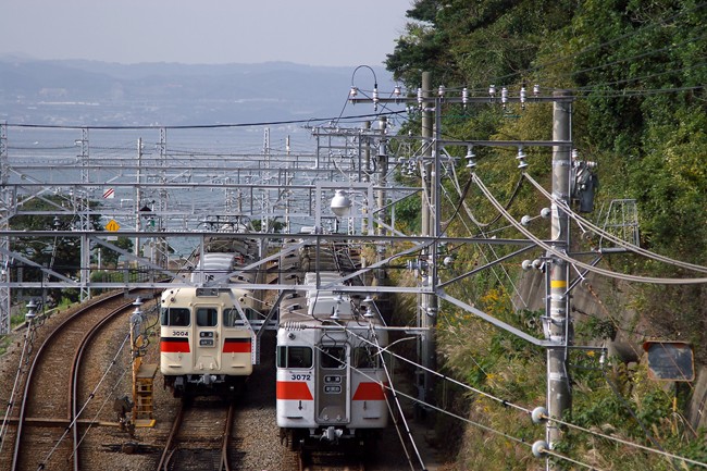 平行して 山側を走る 山陽電鉄