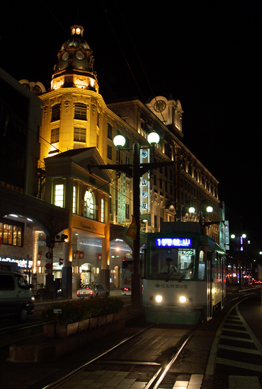 夜も「山形屋」前で。