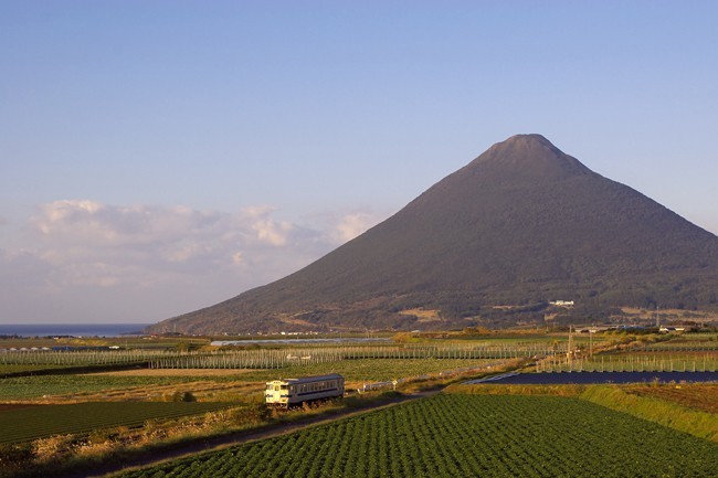 左に東シナ海がちょっと見える。まさに海から海抜約1000メートル。見事な均整美です。