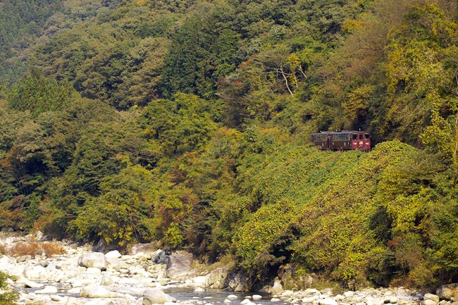 中野で列車に乗り、沢入で下車。そのまま走って、乗ってきた列車を橋上から撮りました。沢入の紅葉は期待したほど進んでおらず、ちょっとがっかりでした。