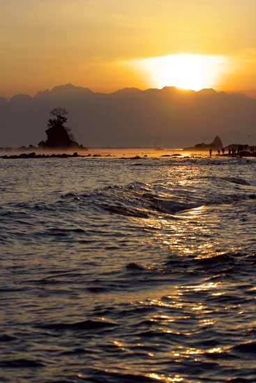 普通だと「ここで一息」ですが、引き続き朝日撮りです。山脈の上には薄雲がかかっているようで、ちょっとぼんやりした朝日でした。