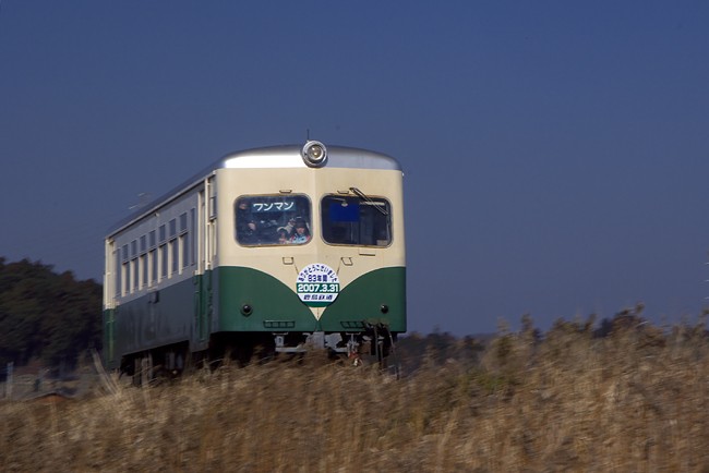 お別れHMを着けた、乗客いっぱいの下り431がボディを揺らしながら登場。雲ひとつ無いプレーンな青空。ちょっと流してみたが、空はやはりプレーンなままだった。 撮影地:桃浦 EOS 20D Canon EF24-105mm F4L IS USM
