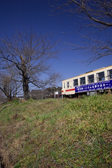 オオイヌノフグリの「青」が目立ち始めた築堤。春近し。営業終了までに「桜」が間に合いそう。