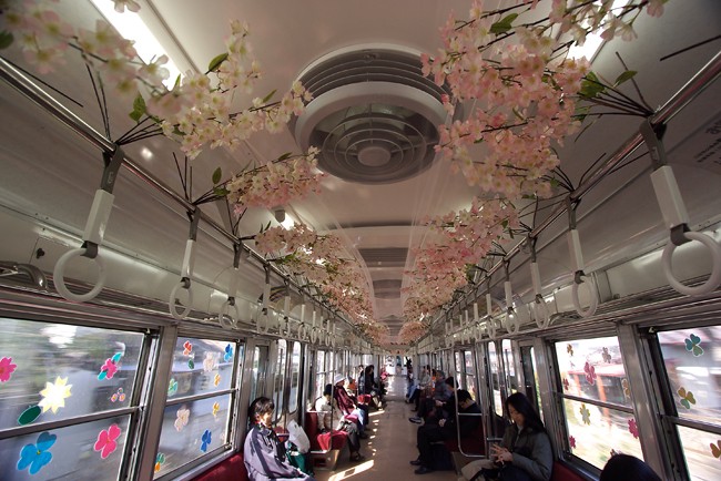 フリーキップ(赤城南麓1日フリー切符1,300円)を買って、桜で飾られた電車に乗り込む。ロケハンしながら、結局終点西桐生の1つ手前、渡良瀬川を渡ったところにある丸山下で下車しました。