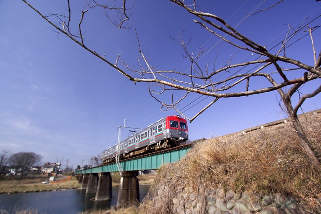 渡良瀬川にかかる鉄橋で撮ることに。この日の上州は快晴。桜の蕾も固く、まだ冬景色でした。