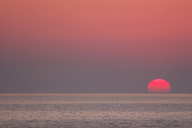 これは前日の夕日。日中の天候を思えば、こんな夕日を見られるなんて、ほんとうに幸運でした。