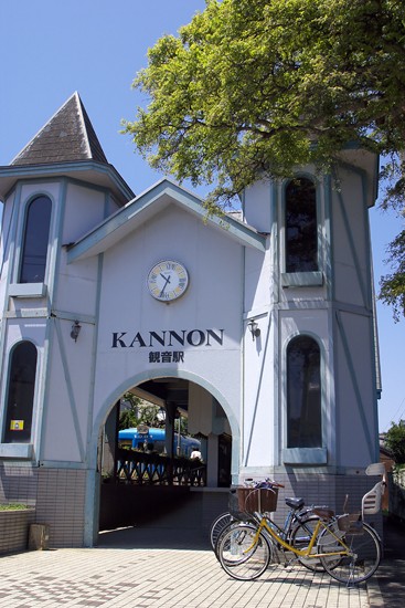 フリー切符は620円。各駅ごとに途中下車しながら、終点に向うことに。ちょっとオシャレな観音駅です。