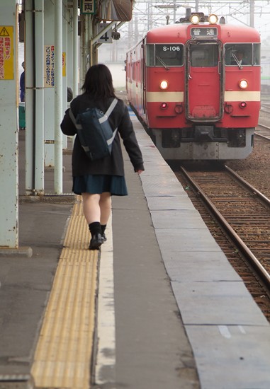 苫小牧駅前のBHに泊まって、翌日は霧の朝。隣駅の沼ノ端に向う