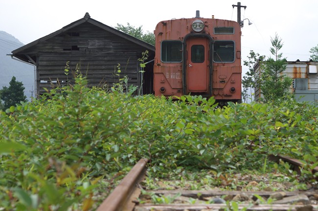 夏草の中に 佇むキハ30を眺め、駅舎で弁当を食べ、しばし佇む。