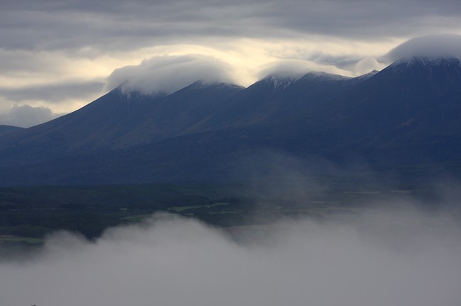 流れる朝霧。なかなか晴れませんね〜