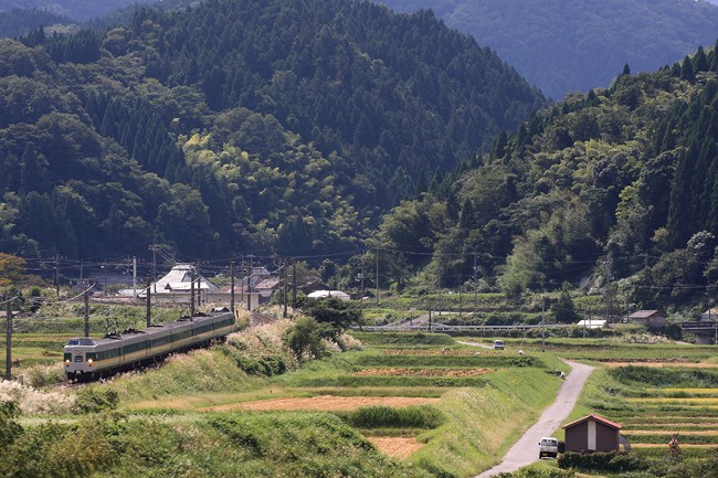県境の峠を越え、鳥取県に入ると、車窓からの眺め(里山風景と稲穂や薄)が素晴らしく、思わず生山で下車し、やり過ごしたあたりに戻りました。