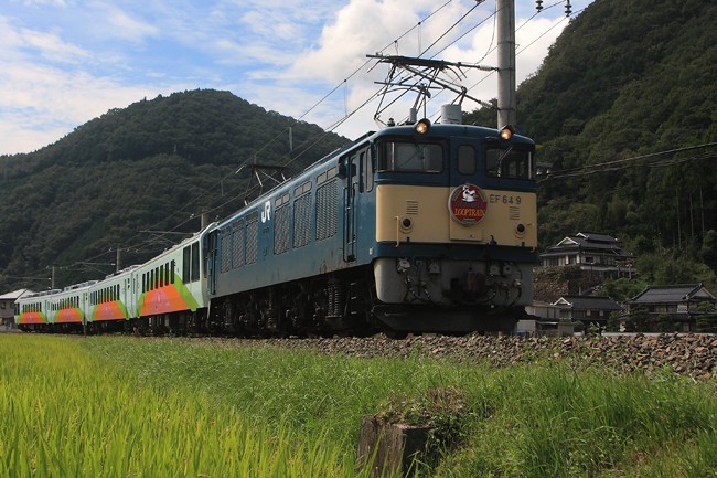 鉄道写真「らしい」ものを、ボーナストラックに数枚。臨時の「岡サロ」というジョイフルトレインです。布原で会った方から教わりました。この地方らしい家々をちょこっと入れて‥。