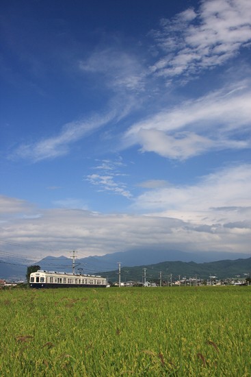 初秋らしい雲、色づく田園。予想外の晴天に気分爽快です。