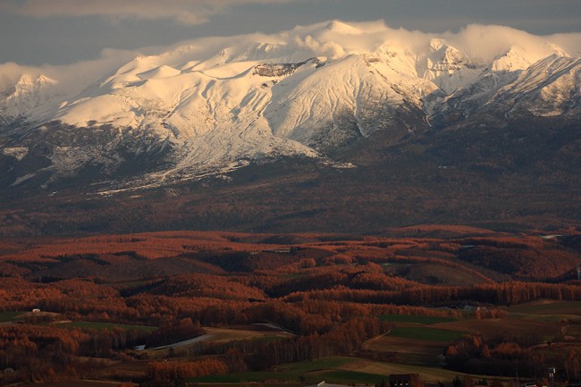 いつもの留辺蘂の高台に移動すると、雲に隠れていた「真打」十勝岳が全容を現しました。