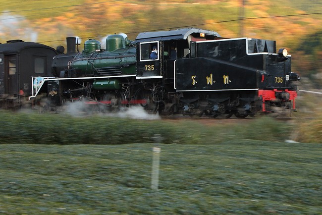 下に降りて、逆光ギラリを狙うも、列車通過の直前で日が落ちた。