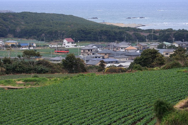 日中は、銚子電鉄へ。キャベツ畑越しに太平洋が見渡せる、晴れたら素晴らしいポイントでした。