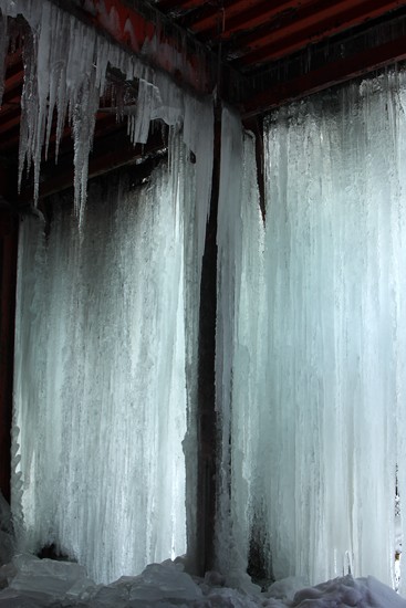 次の撮影地に向う途中、凄い氷柱が!