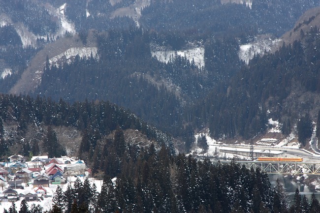 雪は少なめ、早春のような只見川沿線でした。