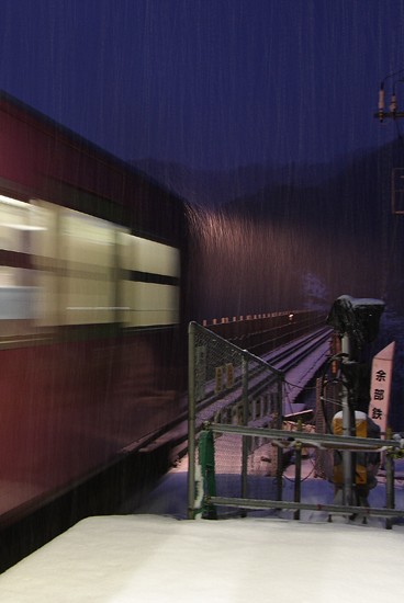 風が無く、それほど寒くないのは助かりました。それとも我が身も東北で慣れたのだろうか、但馬の冬は大したことはない。乗ってきた列車が橋に差し掛かります。