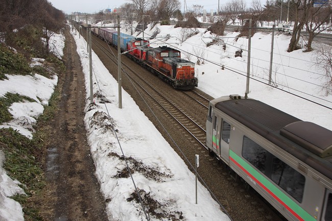 予め調べておいたDD51×2貨物でしたが、被ってしまいました。