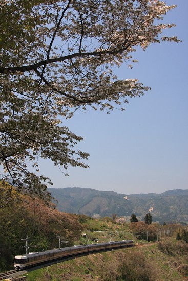 山を登って名古屋に向う「しなの」。まだ、桜が残る沿線です。