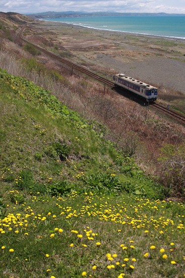 撮影場所の小高い丘は、タンポポの絨毯状態でした。