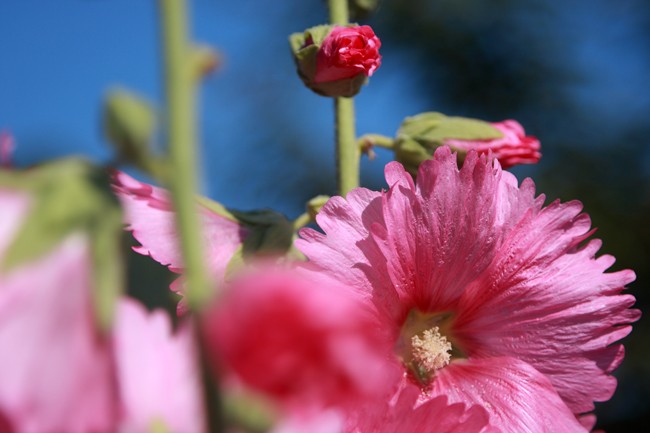 タチアオイ咲く子吉駅で下車しました。気ままですが、このペースがたまりません。