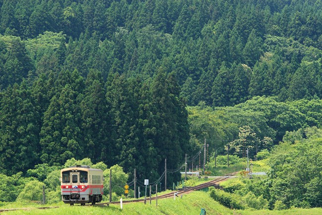 矢島から再び鮎川に戻り、駅前食堂で昼食です。鮎川あたりは花あり、そしてこのような林間ありで、撮りたいものが一杯です。
