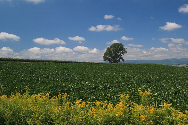 哲学の木が、キャベツとトウモロコシ畑の中に囲まれた夏