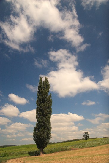 夏ポプラ。お気に入りの美馬牛駅裏あたりの1本ポプラも夏模様
