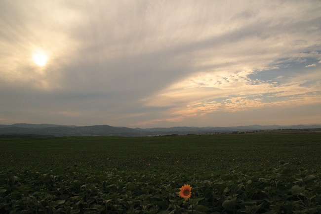 広大な向日葵畑。あと半月もすれば、一面黄色の絨毯になることでしょう。