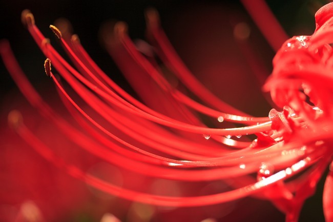 花撮りなので、久しぶりにマクロレンズ帯同。雨上がりでキラキラ彼岸花