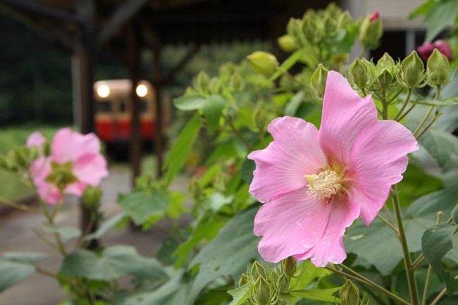 月崎は、思いがけず、満開の芙蓉。桜、紫陽花もいいけど、初秋もいいです、花の駅。