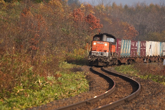 常紋峠144kpあたり。遠軽で長時間停車した8071レが、まさに登るような速さで、ゆっくりと力強くやってきました。
