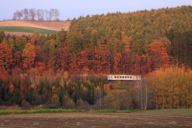 日が傾いた頃に美瑛に到着。夏も撮った深山峠も、すっかり錦秋の色合い