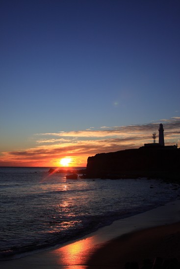 そして、水平線の雲間から柔らかい朝日が顔を出しました。雲のフィルターがかかっていたので、コントラストが強くなり過ぎなかったのが、かえってよかったかなぁ。