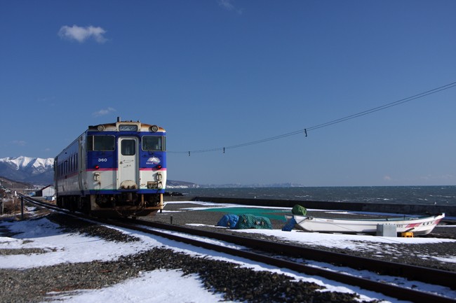 終点まであと3駅。苫小牧から100キロちょっと、5年ぶりの昆布乾しの浜。海が近〜い!