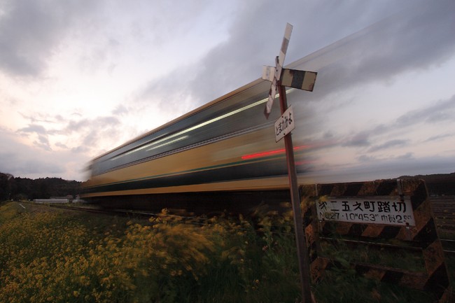 夕焼けが終ると、上総中野行きの単行が足早に通過。さぁ、帰ろう。
