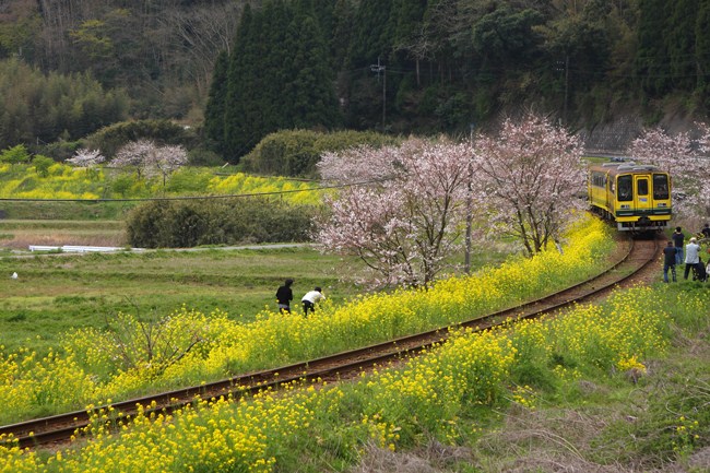 鉄道ファンだけでなく、観光客の皆さんも、ちょっと撮影タイム。そんな和やかな雰囲気、春のいすみです。