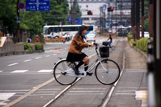 そして、岡山の町、人口60万人超。ここは桃太郎大通り。路面電車が元気に走る、賑やかな町です。