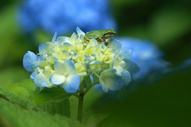 梅雨の上総名物アマガエル。雨降りの日はとくにイキイキしています。